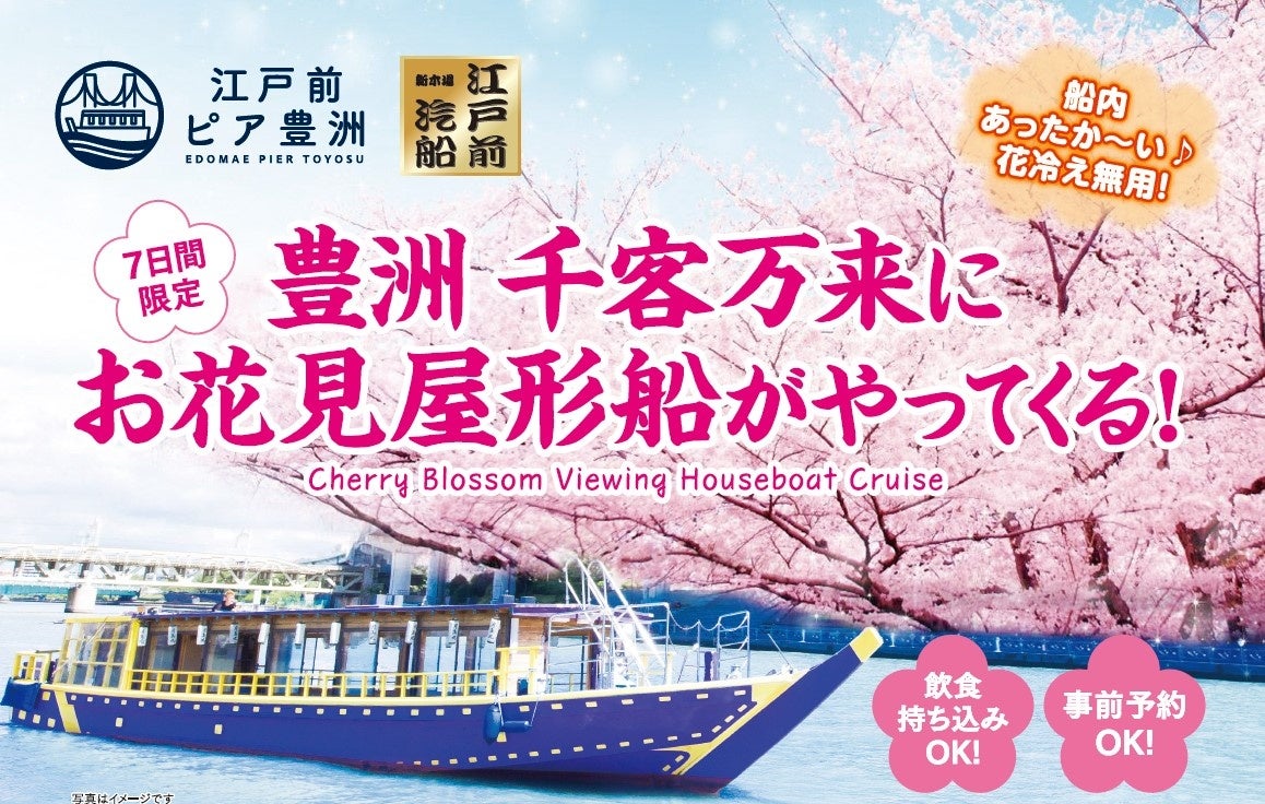 【江戸前汽船】2025年のお花見は「花冷え」無用の屋形船で!「豊洲 千客万来」から出航する「お花見屋形船遊覧クルーズ」運航確定!