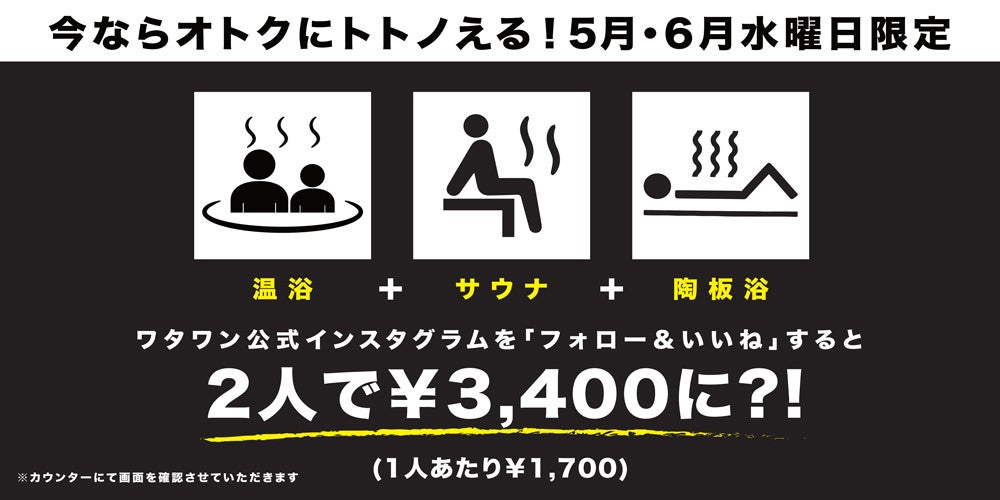 5月1日オープン、WHATAWONの「京町湯屋SOKOTOTO」が期間限定キャンペーンを開催。毎週水曜日は2人で最大半額のお得な一日!