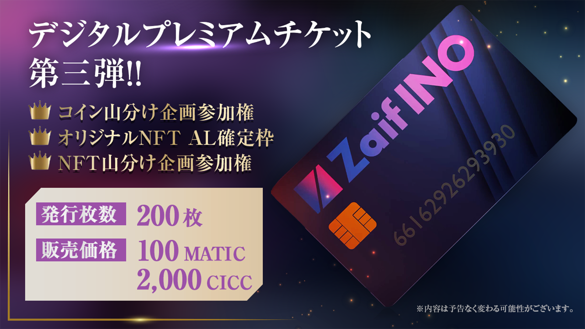 【Zaif INO】「Zaif INOデジタルプレミアムチケット」の販売詳細が決定!複数のNFTプロジェクトから協賛を受け特典を強化、CICC決済ではディスカウント価格で購入可能