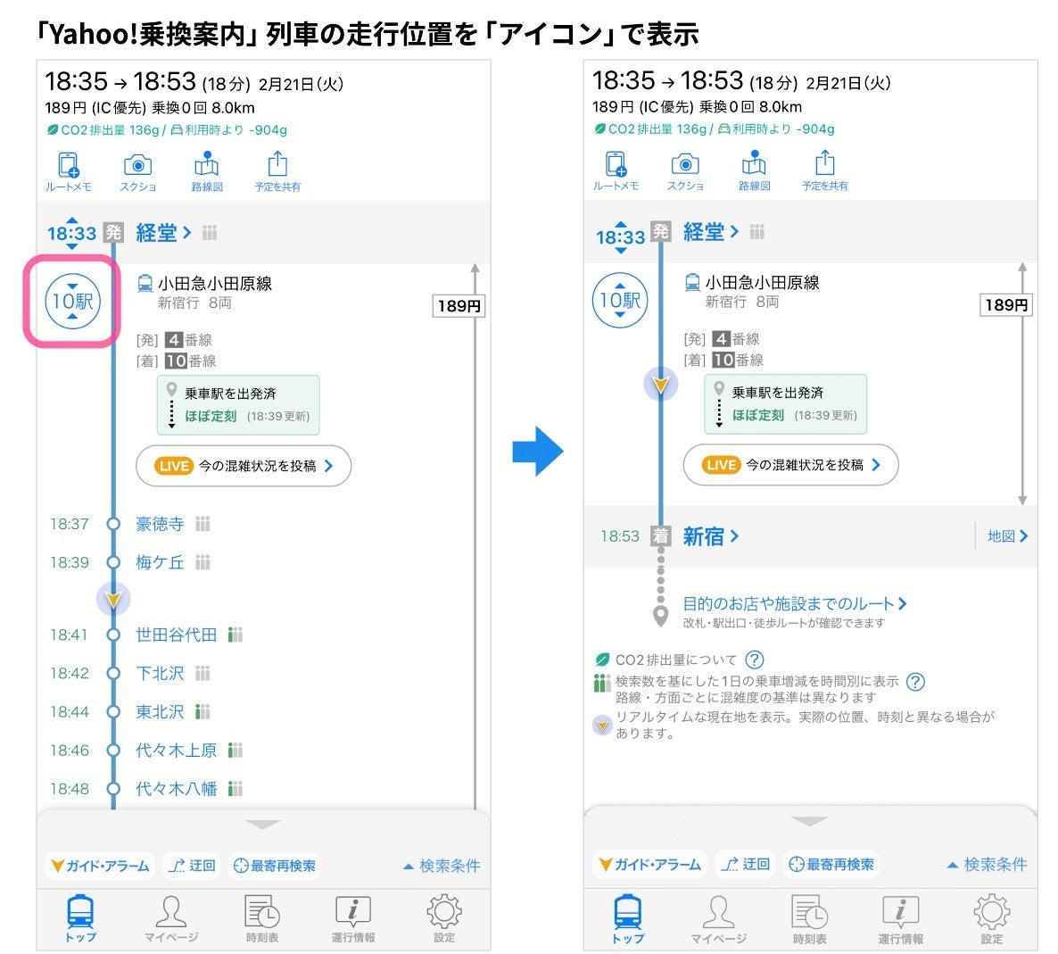 本機能は、これから春に向けて、引っ越しや新生活により通勤通学の経路が変わるユーザーも多くなる中、快適かつ安心して、列車移動ができるよう、「乗車する予定の列車がどのくらい遅延しているか」「乗車している列車が今どのあたりを走行しているか」を一目で確認できます。