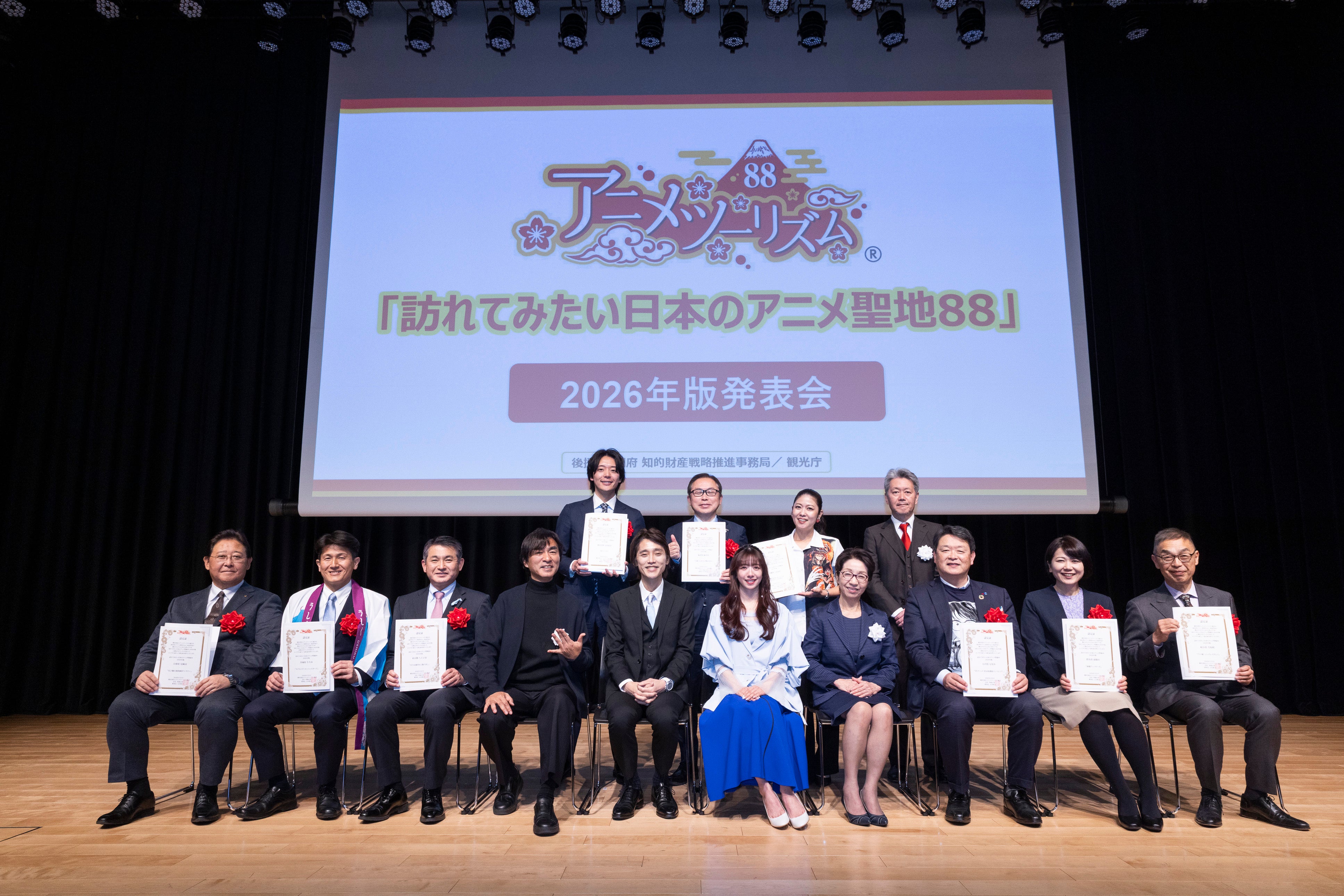 2月13日に「訪れてみたい日本のアニメ聖地88(2026年版)」発表会が神田明神ホール(東京都千代田区外神田2-16-2)で開催され、新規選定聖地の授与式などが行われました。
