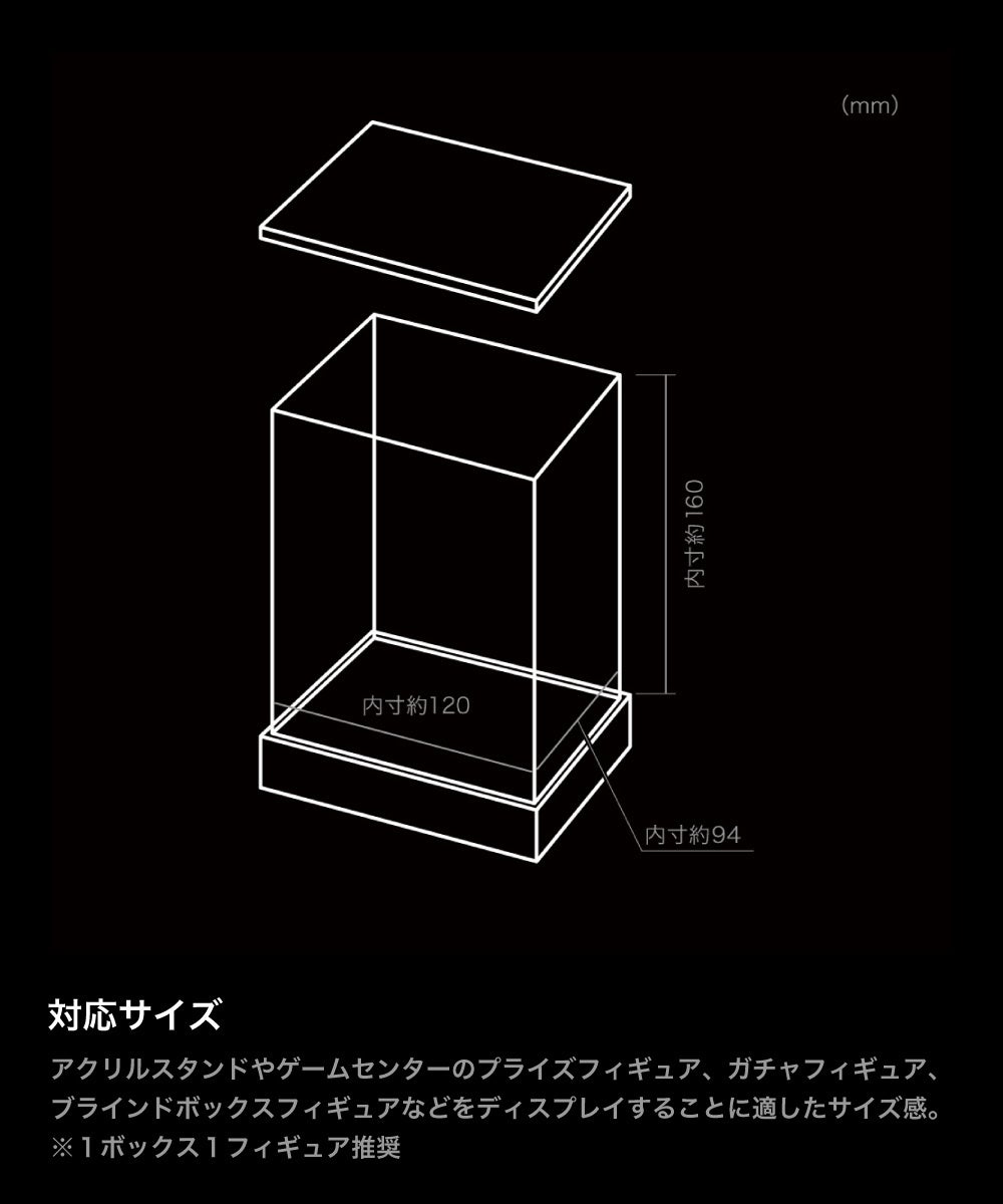 本製品はLEDを搭載したフィギュアやアクリルスタンドなどを飾れるコレクションケースです。
