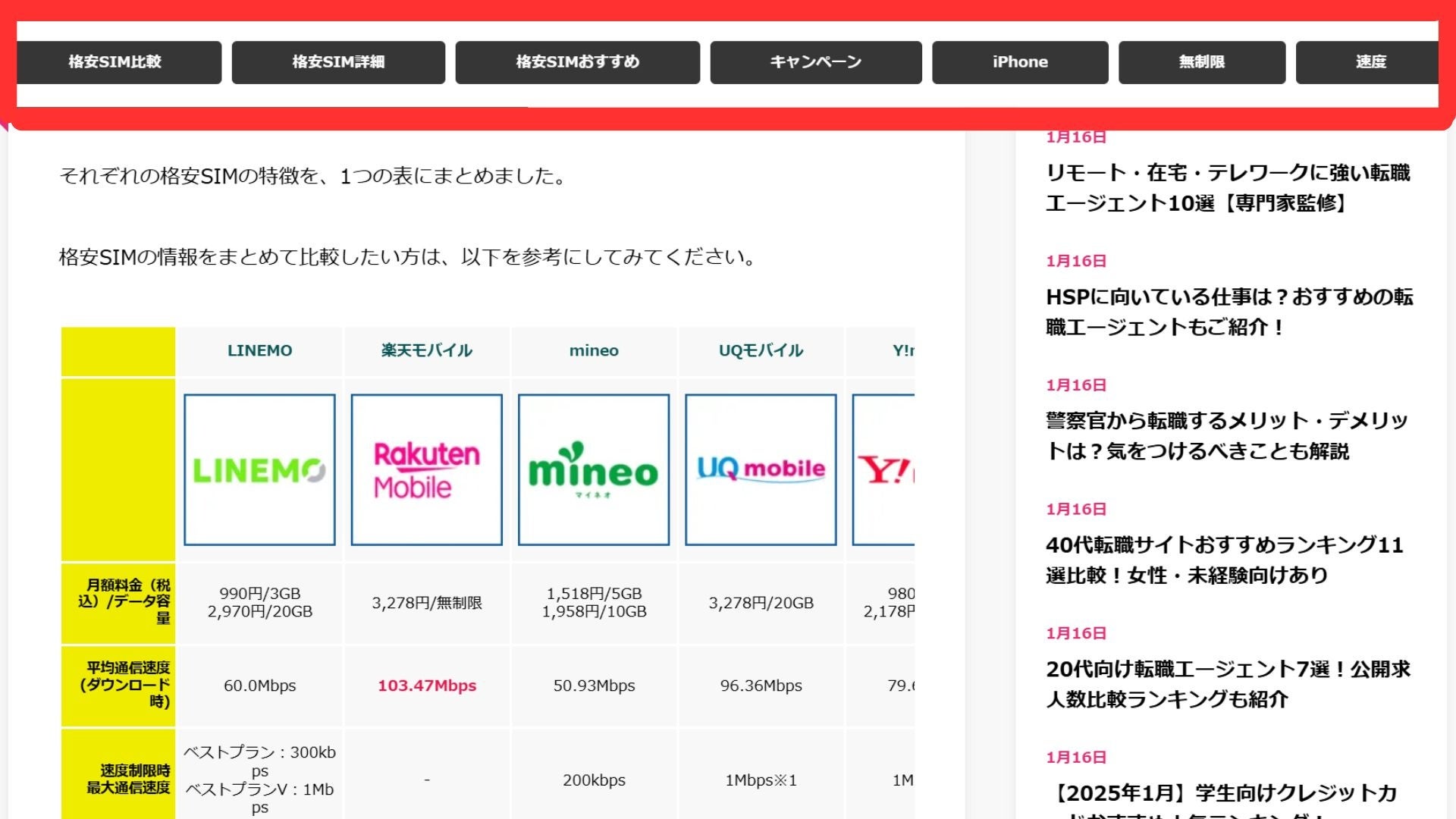 【ゼロメディア】格安SIMカテゴリ ページ内リンク機能を新実装