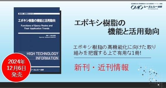 株式会社シーエムシー出版(本社:東京都千代田区神田錦町1-17-1、代表取締役:金森洋平)は、 『エポキシ樹脂の機能と活用動向』(定価:税込66,000円)を、2024年12月6日に発売いたしました。 本書籍は当社ECサイトおよび全国の書店にてご購入いただけます。