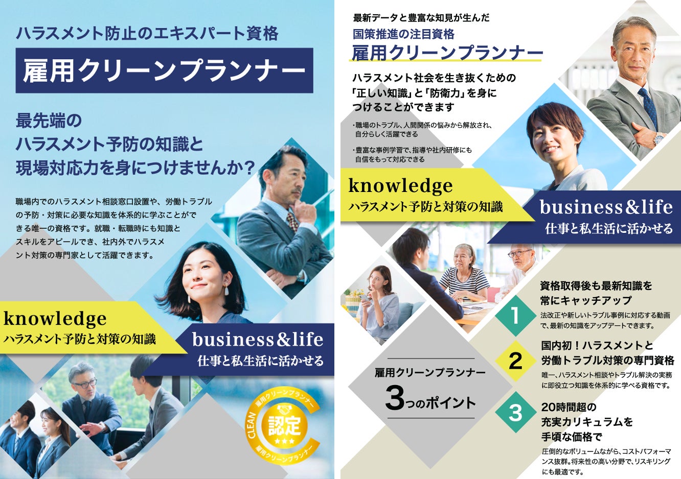 法改正対応、労働トラブル解決、そしてキャリアアップ──国内初のハラスメント&労働トラブル対策資格「雇用クリーンプランナー」が切り開く職場環境の魅力を本パンフレットで大公開