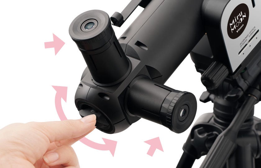 ミルムーンは鏡筒部に、高度(上下)と方位(左右)を精密に調整できる2つの「微動ハンドル」を設けました。
