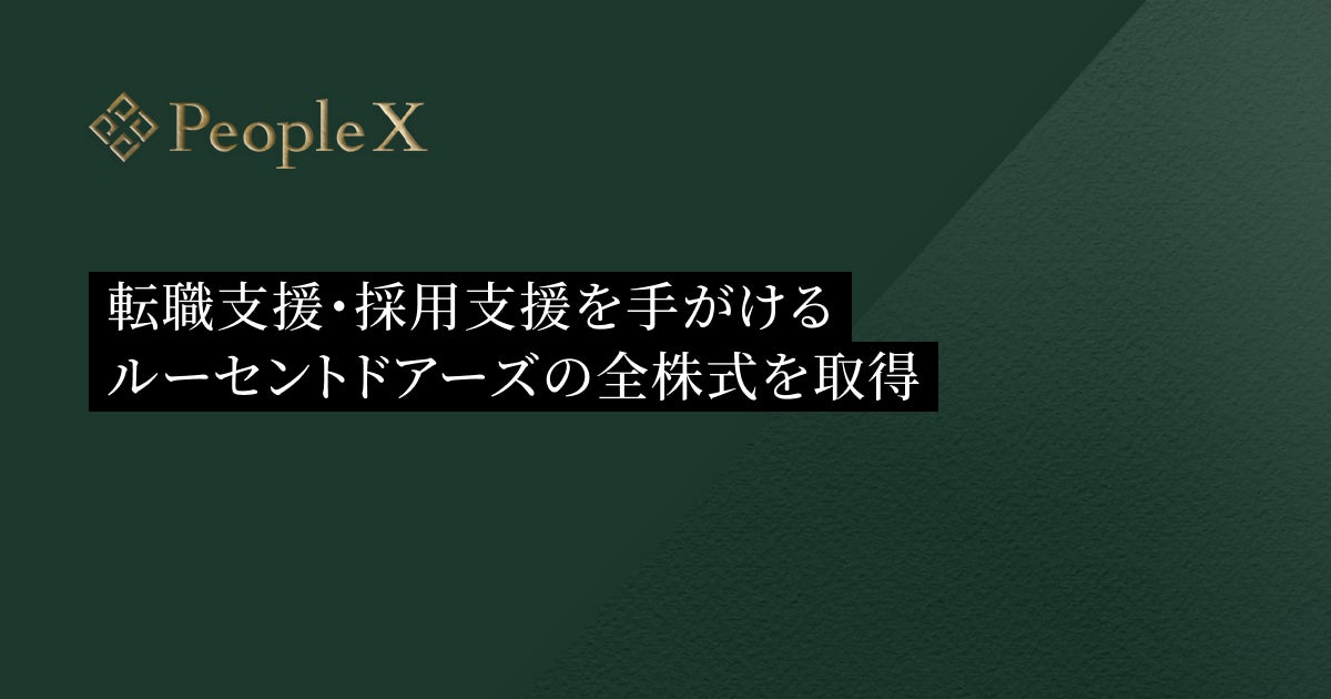 採用から活躍支援まで、AIで人事課題を解決する株式会社PeopleX(本社:東京都新宿区、代表取締役 CEO:橘 大地、以下:当社)は、転職支援・採用支援を手がけるルーセントドアーズ株式会社(東京都港区、代表取締役:黒田 真行)の全株式を取得し、子会社化したことをお知らせいたします。