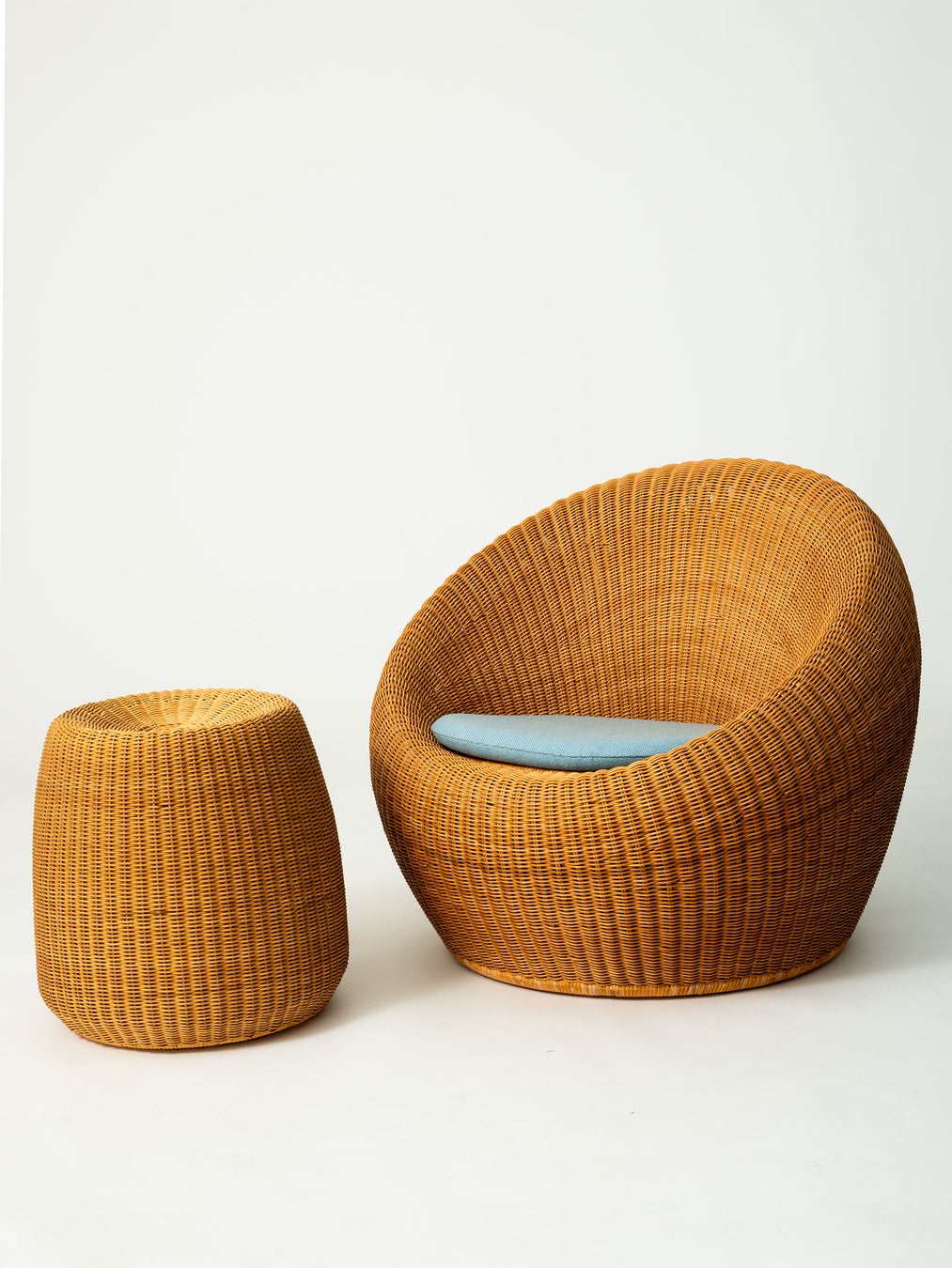 イサム・ノグチによってデザインされたAKARIの貴重な1960年代製のヴィンテージアイテムや、近代的なホテルの先駆けとなったホテルニュージャパンのバーラウンジの為に1960年にデザインされた剣持勇の代表作「ラタンシリーズ」よりラタンチェア&ローテーブルのセットとラタンスツール、剣持勇デザイン研究所によるタワー灰皿セット、柳宗理が1976年にデザインした「日本酒で乾杯!」と書かれた愛らしいパッケージが目を惹く清酒グラスなど、幅広くラインナップいたします。美と機能が響き合う、日本のモダニズムが生んだ名作をご体感ください。
