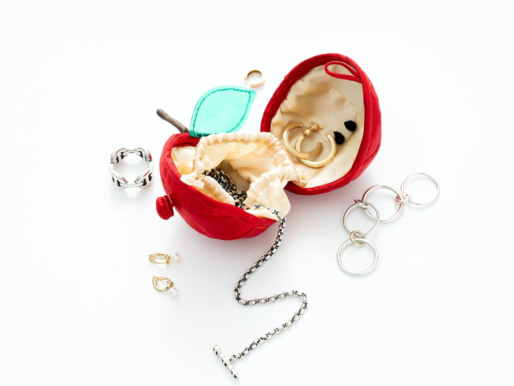 毎シーズン話題となる遊び心溢れるバッグや小物たちを展開するラドローから、京都店限定でりんごモチーフのジュエリーポーチが登場いたします。可愛らしいりんごを開けると、左右で巾着とトレーになっています。旅に出かける際に、巾着にはジュエリーなどの小物を収納でき、宿泊先ではトレーにジュエリーを乗せてお使いいただけます。小さな手のひらサイズなのも愛らしく、見ているだけでハッピーな気持ちになるようなポーチです。