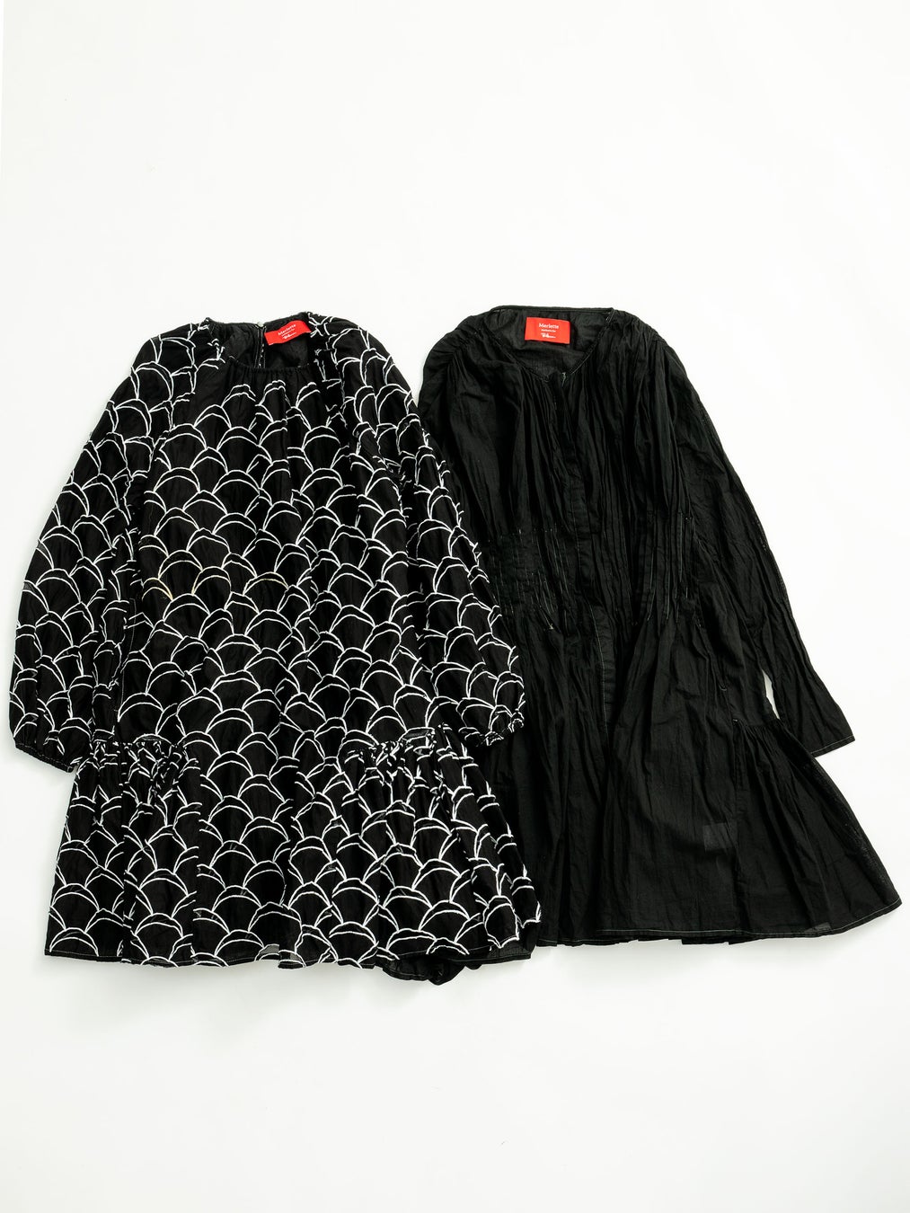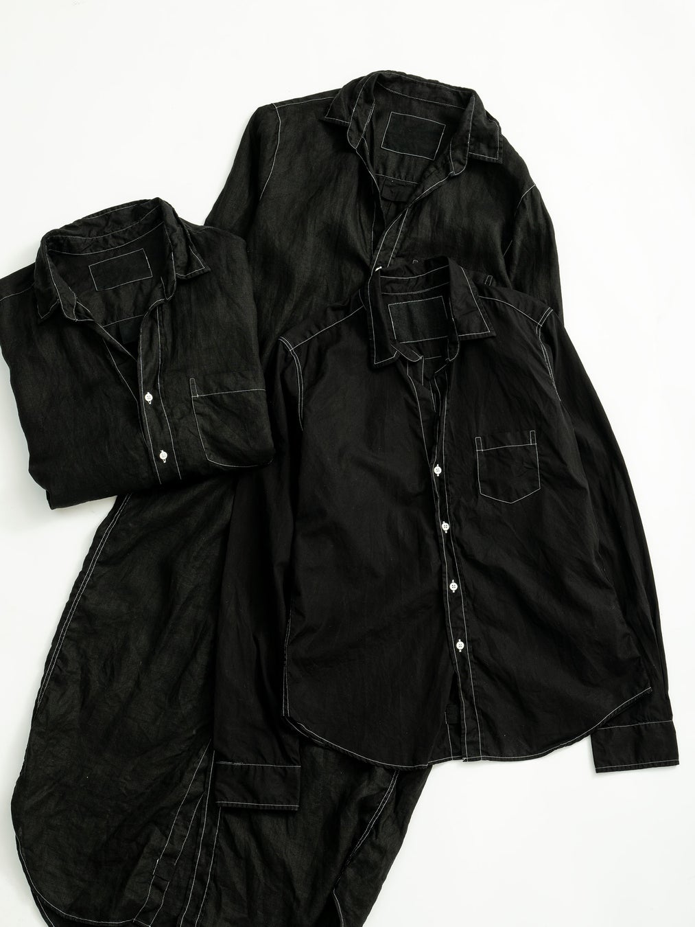ブランドのアーカイブコレクションから人気のシャツやドレスを、1915年に京都で創業した京都紋付の黒染の技術で染めていただきました。100年以上日本の伝統的な正装である黒紋付だけを染め続けてきた京都紋付。10周年のためだけのこの時にしか出会えない特別なコレクションです。