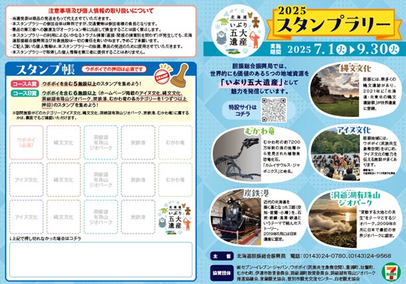 株式会社セブン‐イレブン・ジャパン(本社:東京都千代田区、代表取締役社長:阿久津 知洋)は、2025年7月1日(火)から9月30日(火)までの期間限定で、「いぶり五大遺産スタンプラリー」を北海道胆振総合振興局内のセブン‐イレブン店舗にて開催いたします。