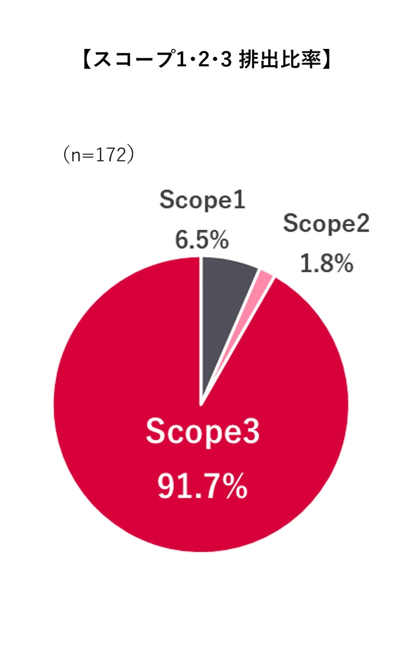 ・172社の総排出量に占めるスコープ3の割合は9割を超え、削減のポテンシャルは非常に大きいと言える。