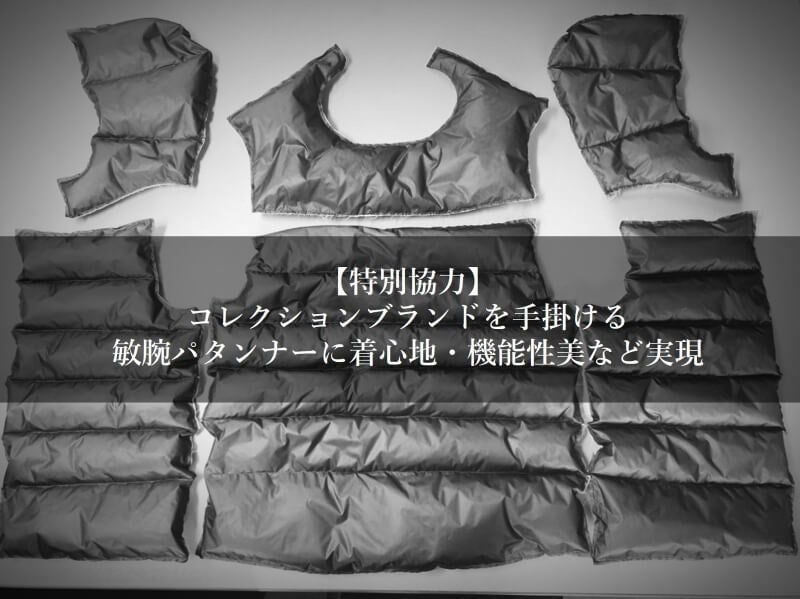 今回の取り組みでは、コレクションブランドなどがお忍び的に使用している知る人ぞ知る北海道・小樽のダウン専業縫製工場にて生産しております。