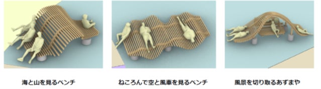 北海道松前町に吹く様々な「風」をモチーフにして、北海道松前町立松城小学校3年生・5年生の児童を対象に、本園内に設置するベンチ・東屋・オリジナルキャラクターの制作ワークショップを開催しました。 制作にあたって当社は、2023年5月に松城小学校の授業の一環としてデザインワークショップをVUILD株式会社と共同開催し、児童の発案したデザインを最大限活かした設計を行いました。また、松前町産を含む地元産材の「道南材」を用い、VUILDの3次元加工技術による製材を経て、2023年9月13日に設置と装飾までを児童と共に完了しております。