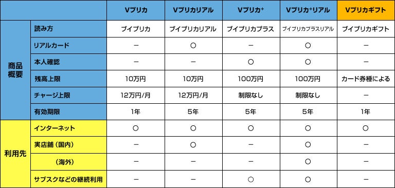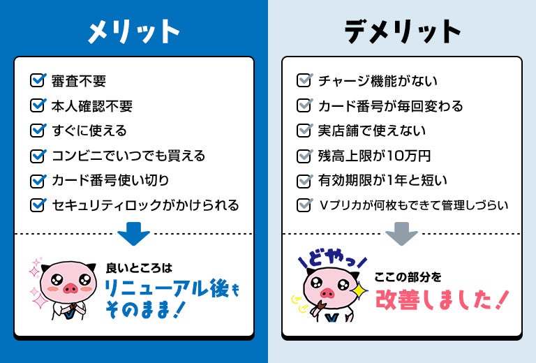 新Vプリカの商品詳細について以下の通りとなりますのでお知らせします。