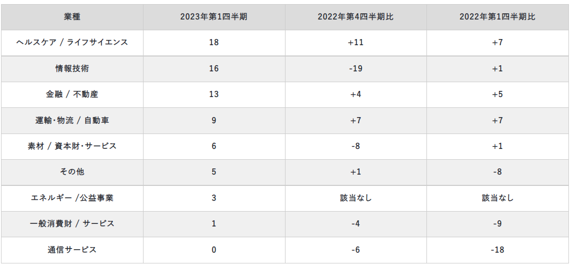 - 2023年第1四半期 業種別:9業種中、8種で増員予測