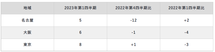 - 2023年第1四半期 地域別:全ての地域で増員予測