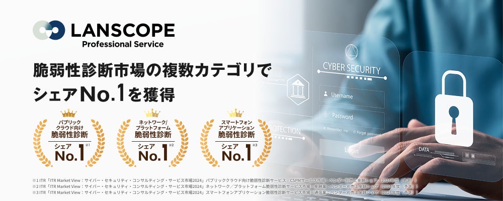 “LANSCOPE プロフェッショナルサービス”の脆弱性診断、パブリッククラウド向けなど複数カテゴリで市場トップシェアを獲得!