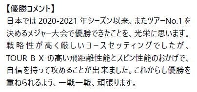 ~TOUR B X/XSゴルフボールが優勝に貢献~