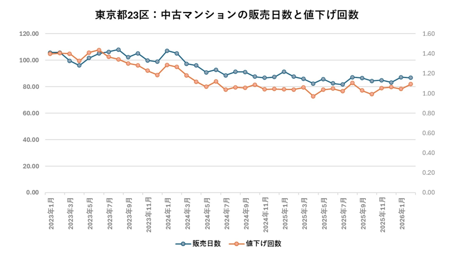販売日数および値下げ回数といった指標を見ると、いずれも低水準で安定的に推移しており、「値下げをせずとも短期間で売却できる」という状況が継続しています。