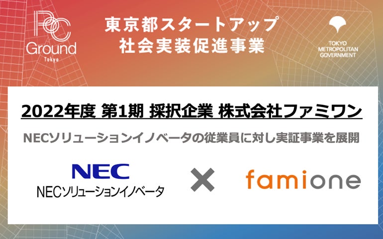 東京都スタートアップ社会実装 促進事業 の採択企業として、NECソリューションイノベータ の従業員向けにファミワンの提供を開始