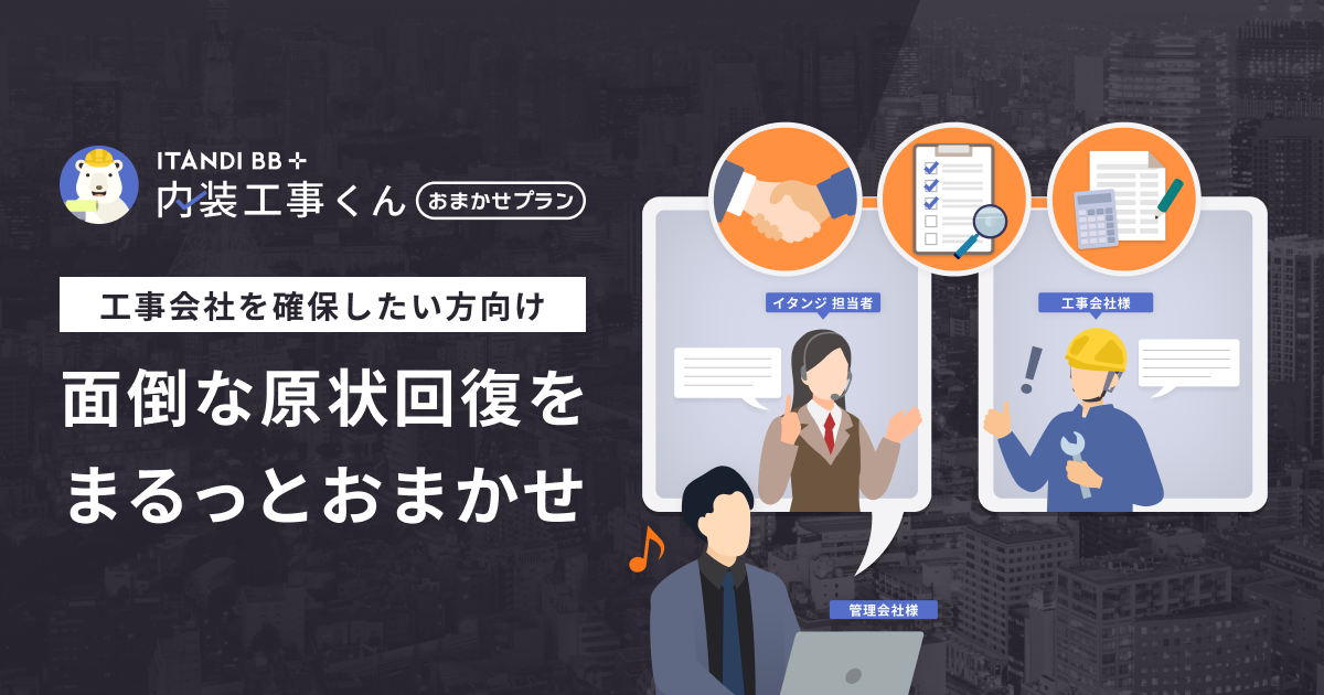 イタンジ「内装工事くん」に、原状回復業務代行サービス「おまかせプラン」が登場