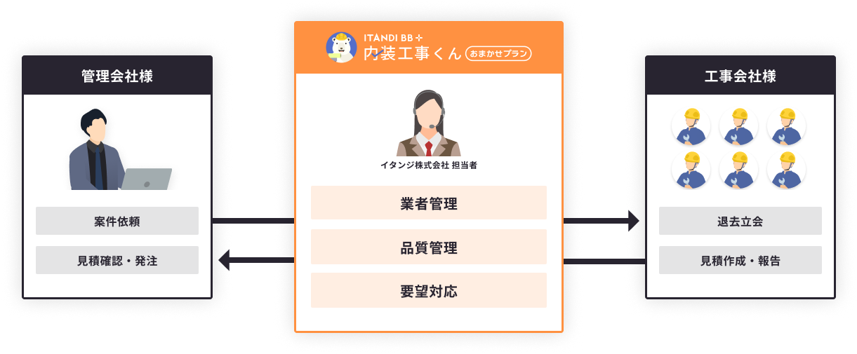 工事会社のマッチングから退去立会、工事完了まで一連の業務をイタンジがサポート