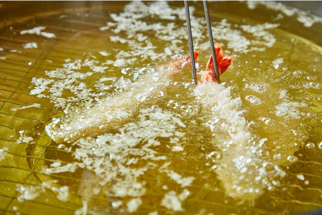 パンを焼くときに 表面をしっかり茶色く焼く場合としっかり焼けているけれど色がついていない焼き方もできます。この後者のトーストは サクッとした食感も ありながら中はジューシーにモチっとと仕上がります 。『粉雪衣』のフライは、まさにこのトーストのようにサクッとした 食感がありながら 口どけがよい衣をまとい、