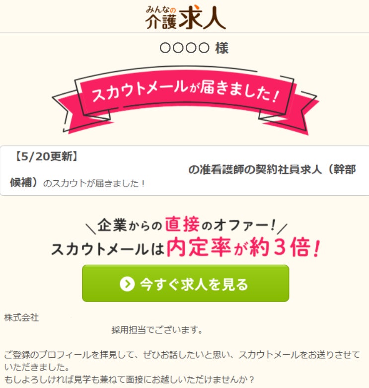 【みんなの介護求人】求職者向けのスカウトメールに「今すぐ求人を見る」ボタンを新設!