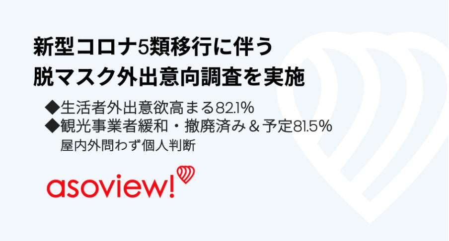 アソビュー、新型コロナ5類移行に伴う脱マスク外出意向調査を実施。 外出 「意欲高まる」8割超で3月の個人判断時より大幅躍進。