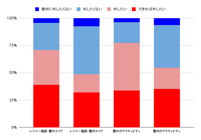 - 屋外での遊び(レジャー施設の屋外エリア・屋外のアクティビティ)では7割超がマスクを外したい意向