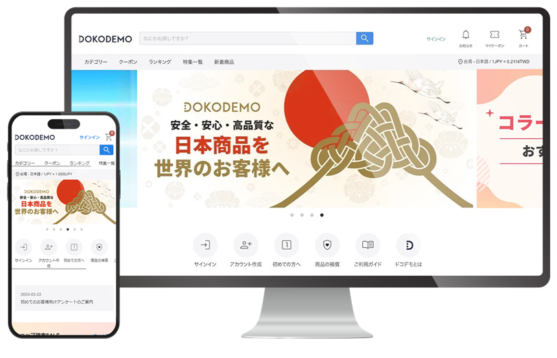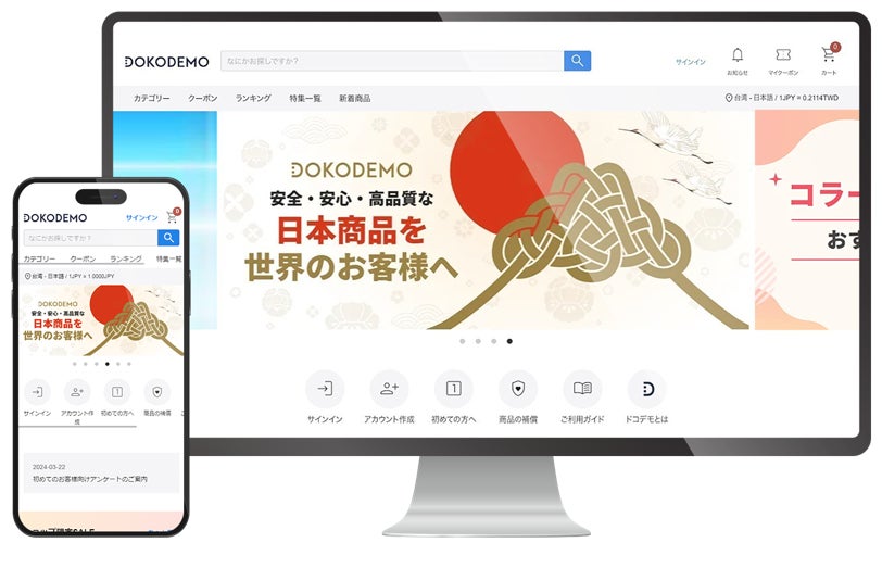 こうした市場背景を受け、インアゴーラがこれまで培ったサプライチェーンの強みや、日本人以外の海外のお客様に向けた日本商品の魅力を伝える充実した独自のコンテンツを活かし、「DOKODEMO(ドコデモ)」を通じて台湾向けに新たな販売チャンネルの確立を図ります。多様なカテゴリーと豊富なラインナップをもって日本商品に興味関心の高い台湾のお客様に日本の優れた商品をご紹介いたします。