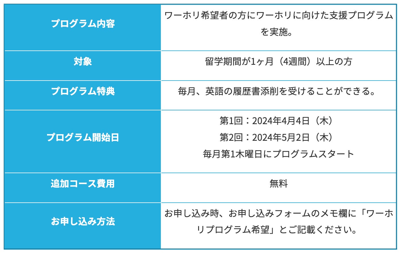 QQEnglishでは、「ワーキングホリデー支援プログラム」を開始致しました。