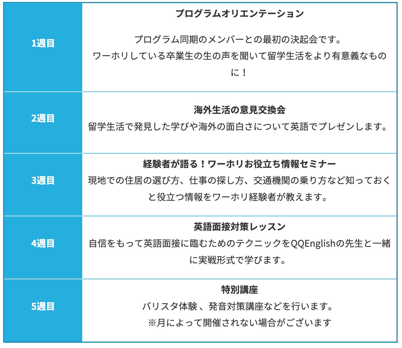 プログラムではワーホリ希望者の方を対象に、充実したワーホリ生活を送るためのイベントやセミナーを開催します。