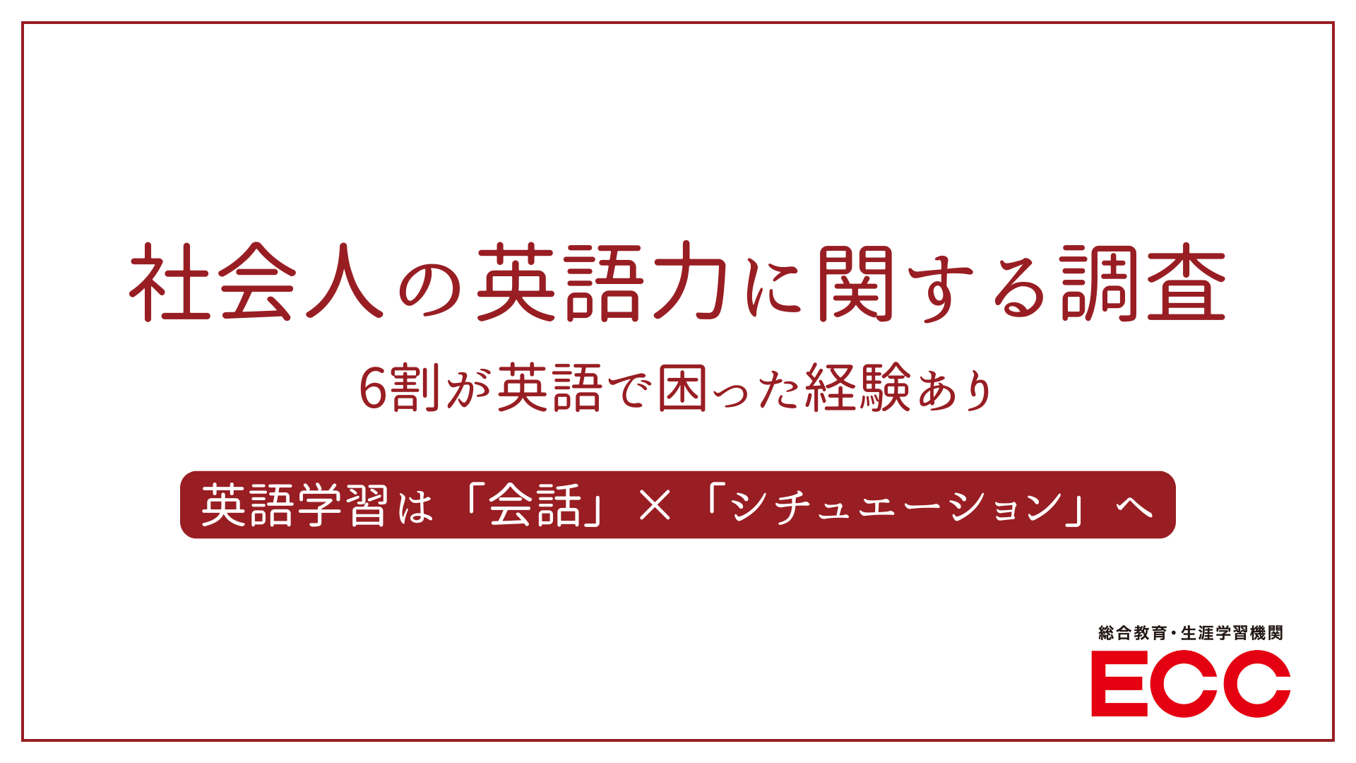 総合教育・生涯学習機関の株式会社ECC(本社:大阪市北区、代表取締役社長:花房雅博 以下、ECC)は、20~30代の一般社員(主任・係長クラス含む)300名と40~60代の管理職(課長クラス以上)300名の計600名を対象に「社会人の英語力に関する調査」を実施しました。