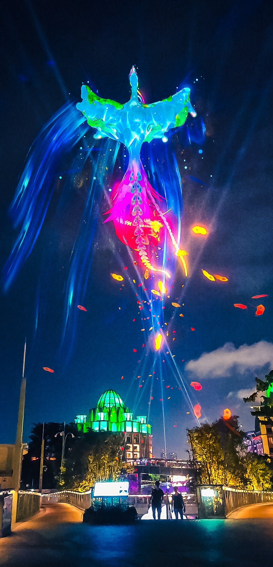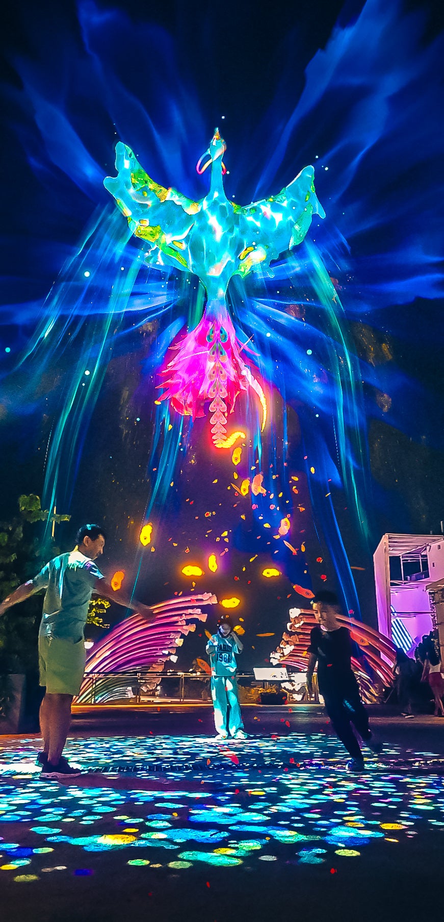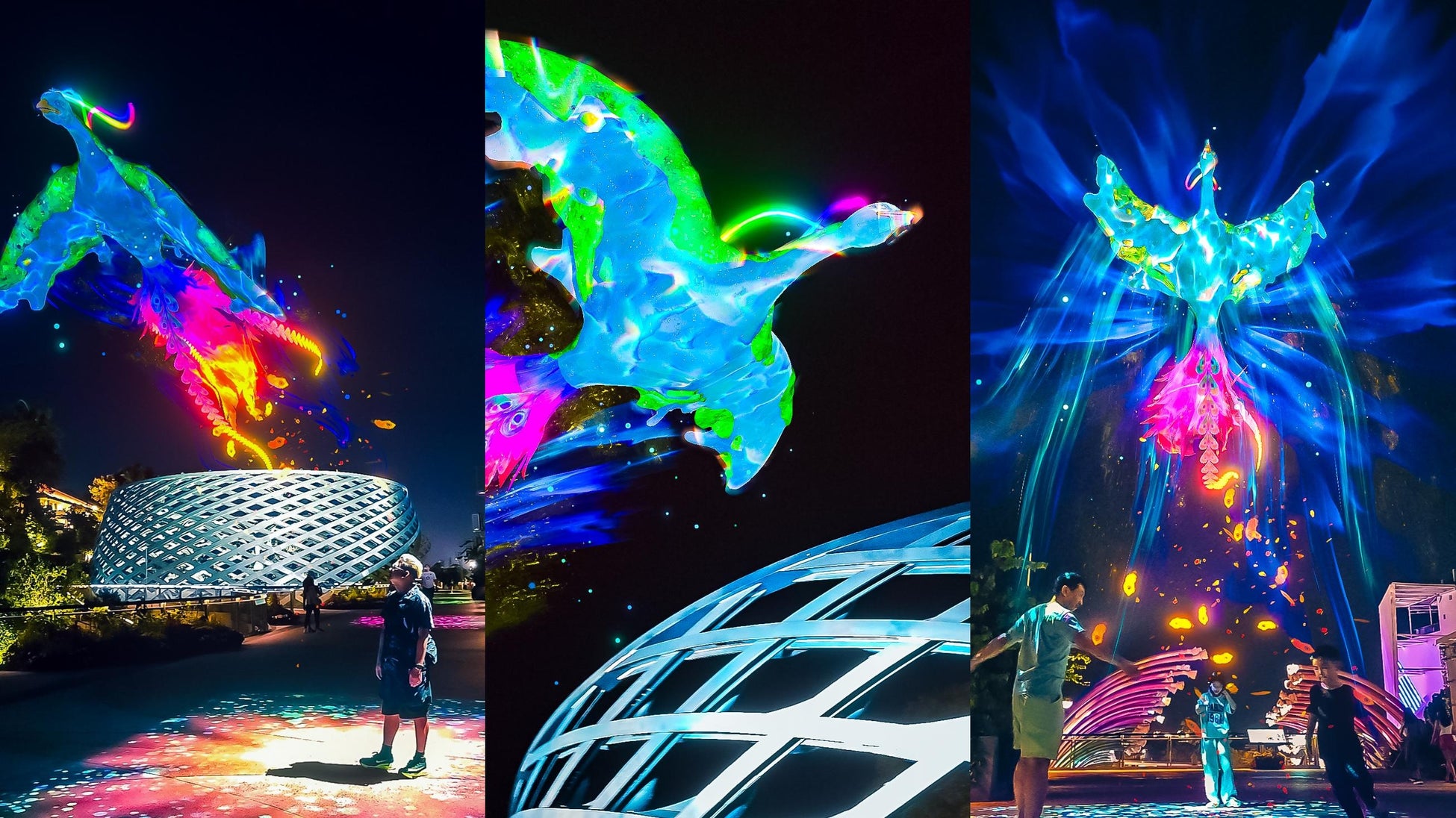 「ImagiNite」は、「Sentosa Sensoryscape」で展開される夜のデジタルアート体験です。光、映像、音、ARを活用し、五感を超えた「第六感の想像力」を刺激するエンターテイメントとして設計されています。