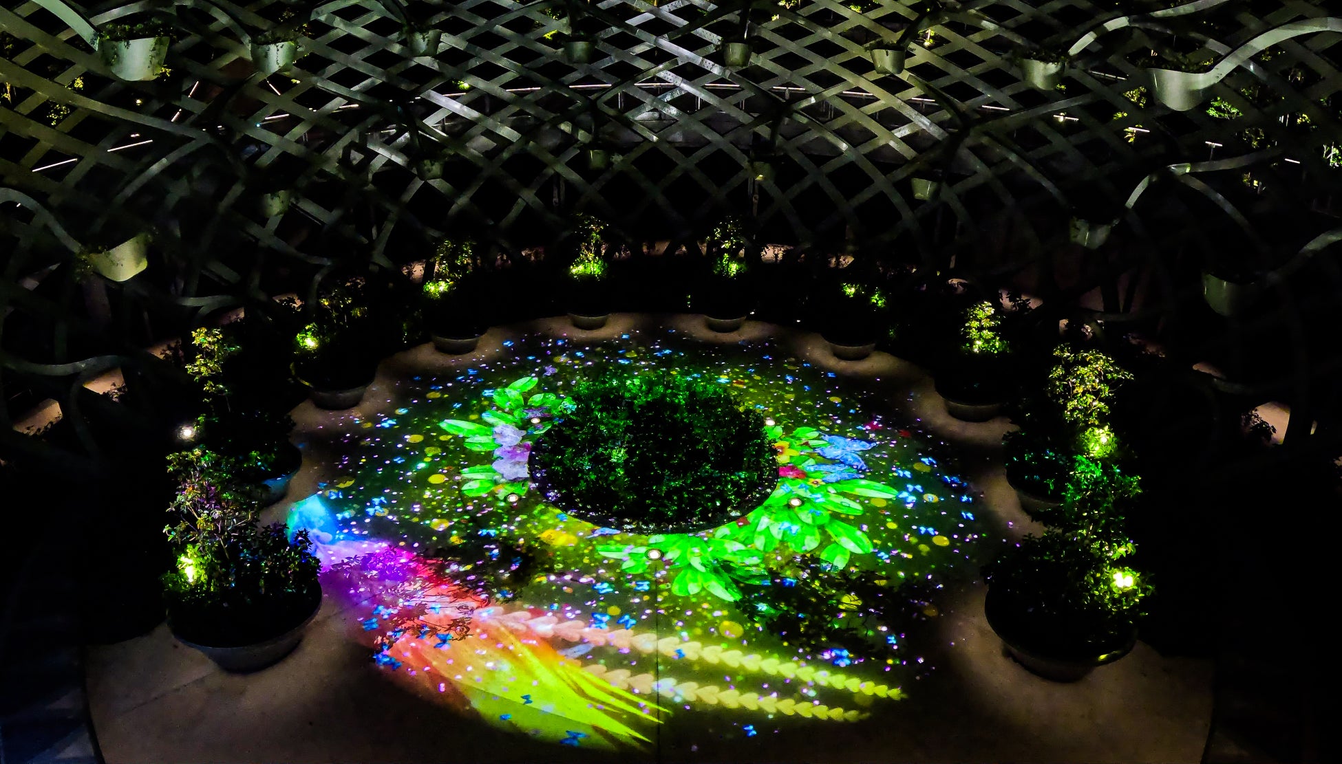 「ImagiNite」のデジタルコンテンツは、6つのガーデンと2つの通路(Upper Deck)で構成されています。各ガーデンの五感(視覚、聴覚、味覚、嗅覚、触覚)にまつわる特徴的な外観、雰囲気を引き立て、Sensoryscape全体の雰囲気、来場者の体験をより向上させます。