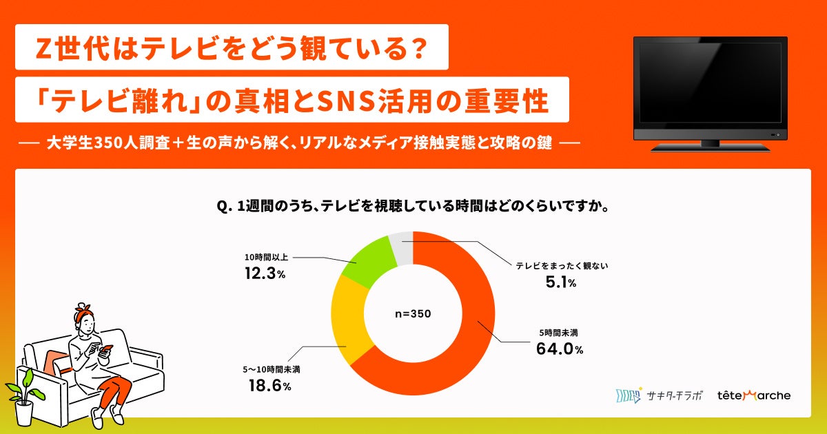 株式会社テテマーチ(本社:東京都目黒区、代表取締役:上田 大介)が運営するサキダチラボは、Z世代のテレビ視聴に関する実態調査を実施し、その分析結果を調査レポートとして発表しました。本調査では、全国の現役大学生・大学院生350名を対象にアンケート調査を行い、さらに5名の大学生へのデプスインタビューを実施しました。
