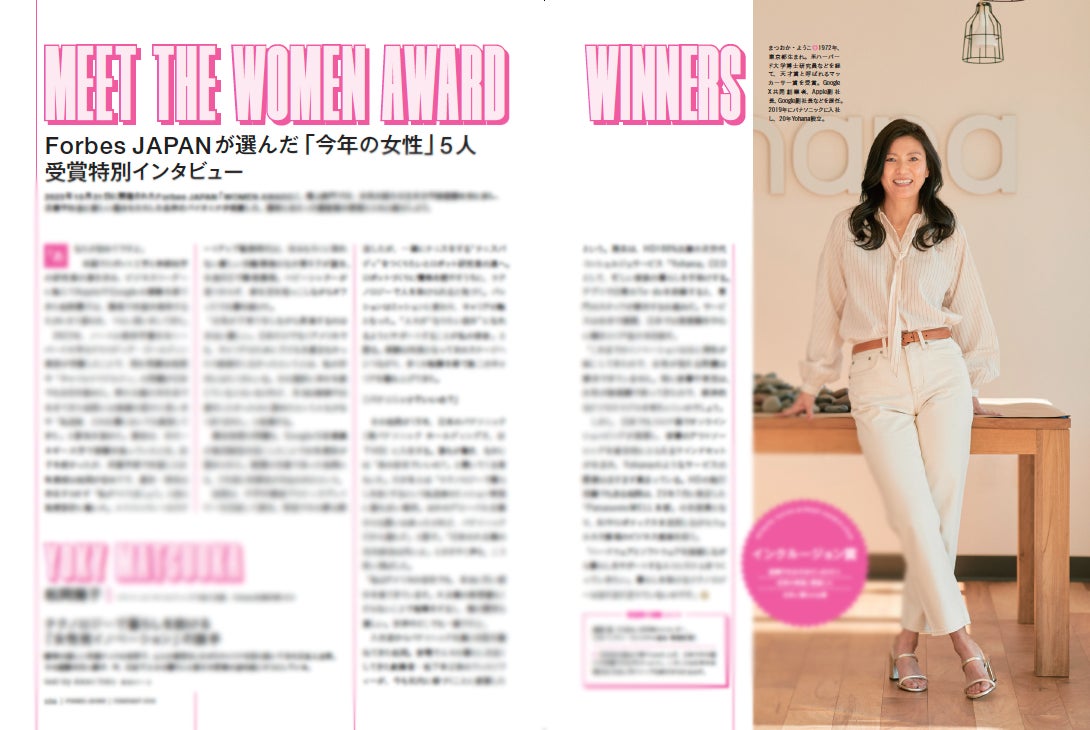 また、次世代のリーダーとなる30歳未満のForbes JAPAN 30Under30受賞者が見た「これから面白くなるもの」を紹介。第2特集ではForbes JAPAN「WOMEN AWARD」から「今年の女性たち」が登場。