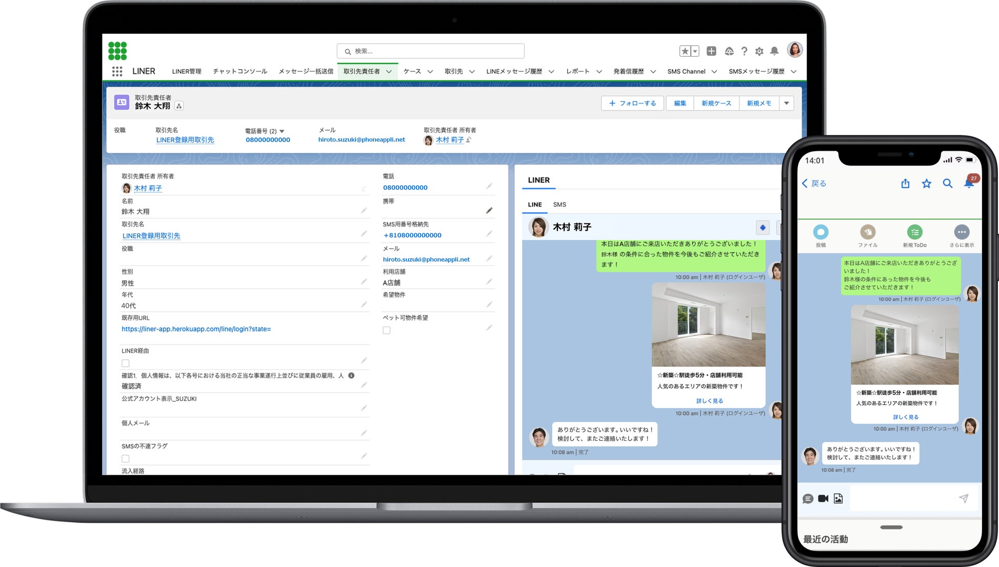 「PHONE APPLI LINER」はSalesforceとLINE、SalesforceとSMSをつなぎ、One to Oneコミュニケーションを実現し、顧客が欲しい情報を欲しいタイミングでお届けすることで顧客とのエンゲージメントを高めるSalesforce AppExchangeアプリケーションです。