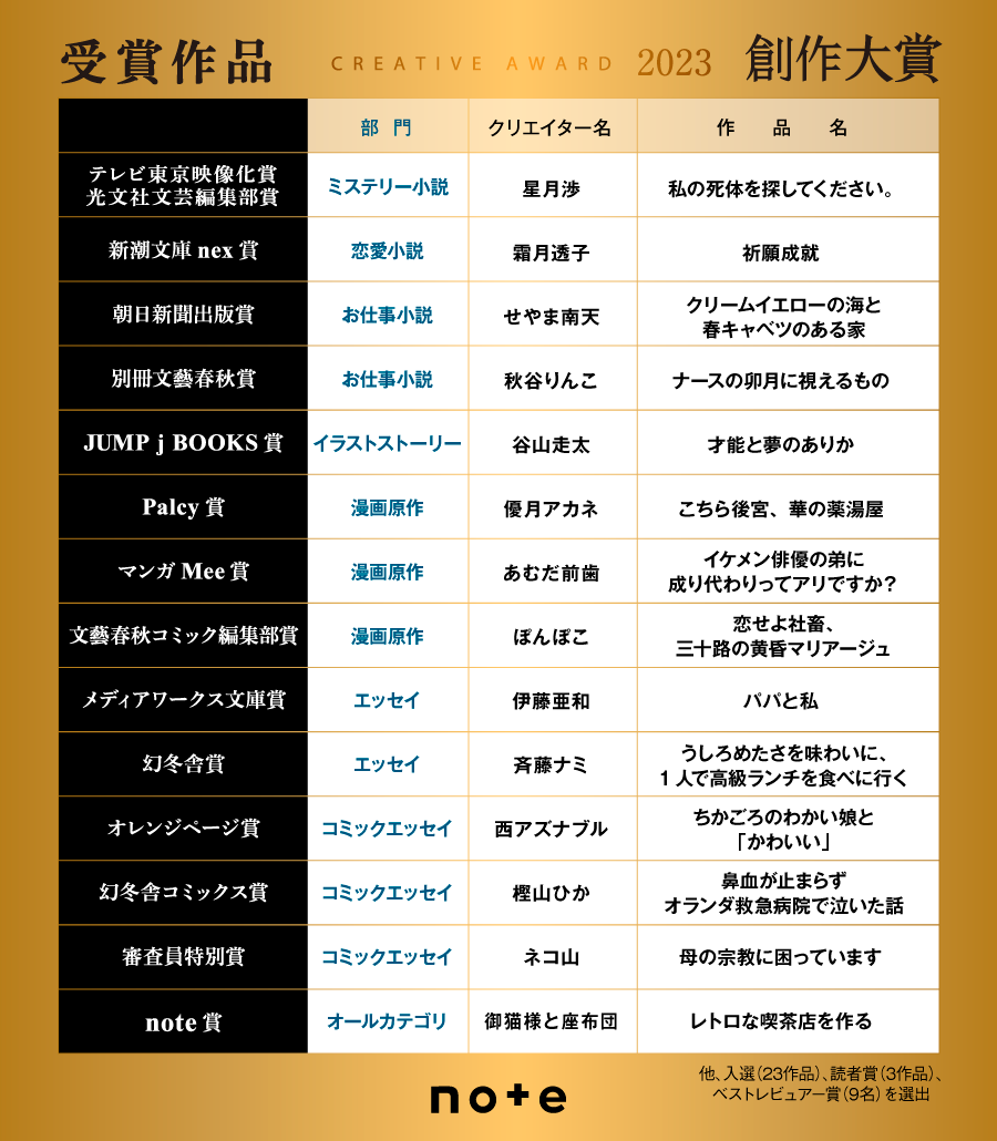 「創作大賞2023」受賞作品を発表!応募総数は約3万4千件