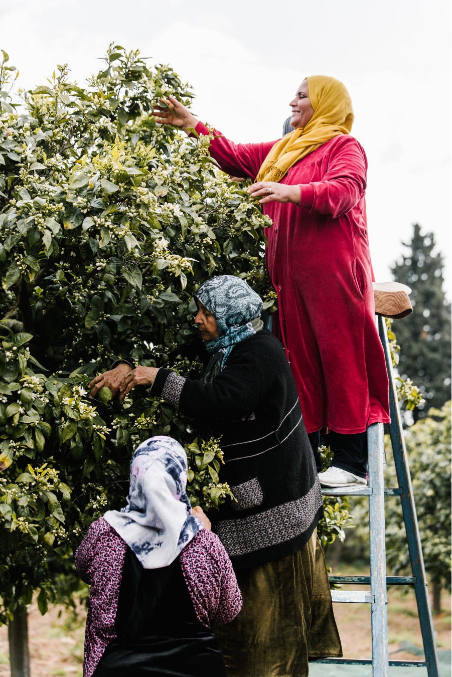 その中を収穫人はまるで踊りを舞うように、代々受け継がれてきたテクニックを駆使した動きを正確に繰り返します。それは、バラやネロリの花びらの絹のような滑らかさや、マルツォーロ マンダリンの皮を傷つけないように考え出された独自の技術。そこには、自然と、自然が私たちに与えてくれるすべてのものに対する敬意が存在します。