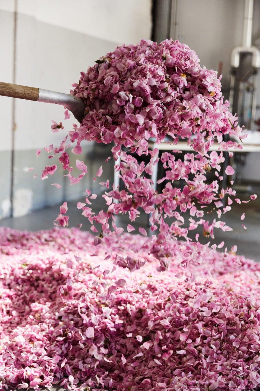 ゲラン調香師は、〈ローザ ロッサ ハーベスト〉のために、グラース地方の宝石と呼ばれるセンティフォリア ローズを蒸留したグラース産オーガニックローズウォーターを新たに選びました。香料を希釈する際、通常用いられる精製水の代わりに、このフレッシュなローズウォーターが、〈ローザ ロッサ〉のブルガリアン ローズエッセンスと情熱的なターキッシュ ローズエッセンスが織りなす芳醇なローズのファセットと溶け合い、大胆さとセンシュアリティをもたらします。