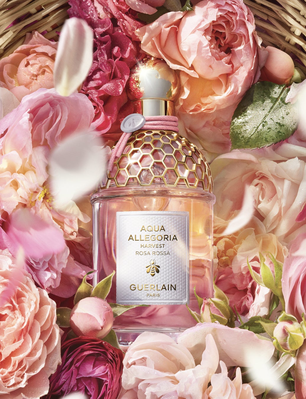 〈ローザ ロッサ ハーベスト〉は、バラの花の豊かな表情と、一日を通して変化するその香りを称えます。ゲラン調香師は、選び抜いたエッセンスをかけ合わせ、摘みたてのバラの複雑で繊細な香りを再現します。ローズの香りが肌の上で徐々に広がると、トップノートのカシスの実と茎、ライチアコードとともに、ローズウォーターによるローズの花びらの酸味が香ります。太陽を光で温められたローズが、より濃厚で、奥深いハートノートへと移ろいます。この高貴な香りを描くのは、ブルガリア産ローズエッセンスのフルーティーなアーモンドのような香りと、トルコ産ローズエッセンスのハチミツの調べ。ベースノートは、サンダルウッド、ベンゾイン、ムスクがアクセントとなり、ローズが優しく肌を包み込みます。