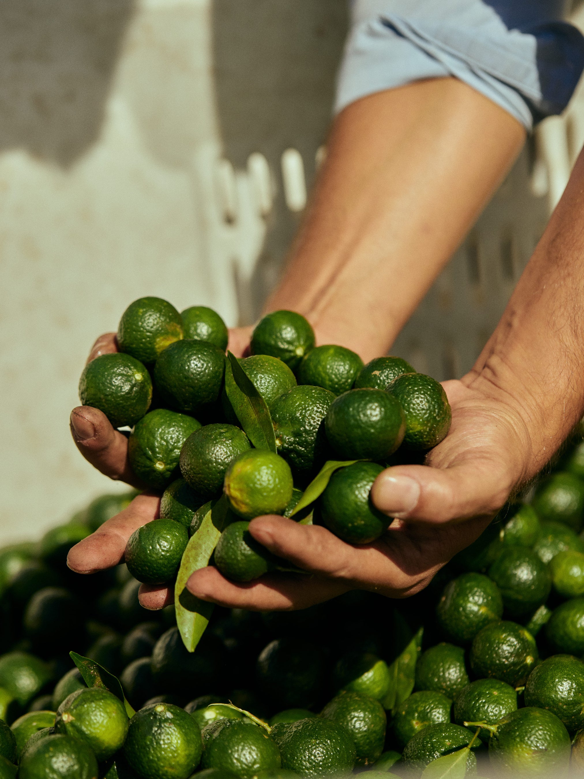 ゲランの調香師が〈マンダリン バジリック ハーベスト〉に選んだのは未完熟のマルツォーロ マンダリン。この種は、他のマンダリンとは異なり、3月まで完熟を迎えません。そのため、11月のまだ青い時期の果皮は、ほのかに苦みのある香りを放ちます。ゲランの調香師を魅了したのは、まさにこの香りでした。手摘みされたマルツォーロ マンダリンは、果皮の中に含まれているエッセンシャルオイルを抽出するため、スフマトリーチェとトルキオという2種類の機械に送られます。まず、2つのローラーでプレスしてから圧搾し、採れたマンダリンジュースを遠心分離器にかけてエッセンスを抽出します。このエッセンシャルオイルがもたらすほろ苦いアクセントが、〈マンダリンバジリック〉のフレッシュさの中で力強く輝きます。