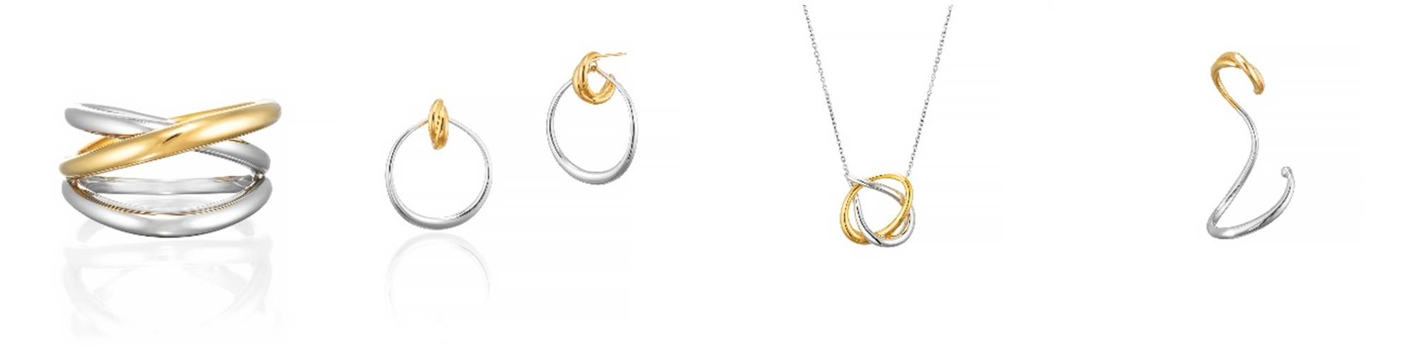 4℃らしい大胆かつ繊細な地金のラインで立体美を実現した、身に着ける人の凛としたしなやかな魅力を引き出すジュエリーを取り入れて。