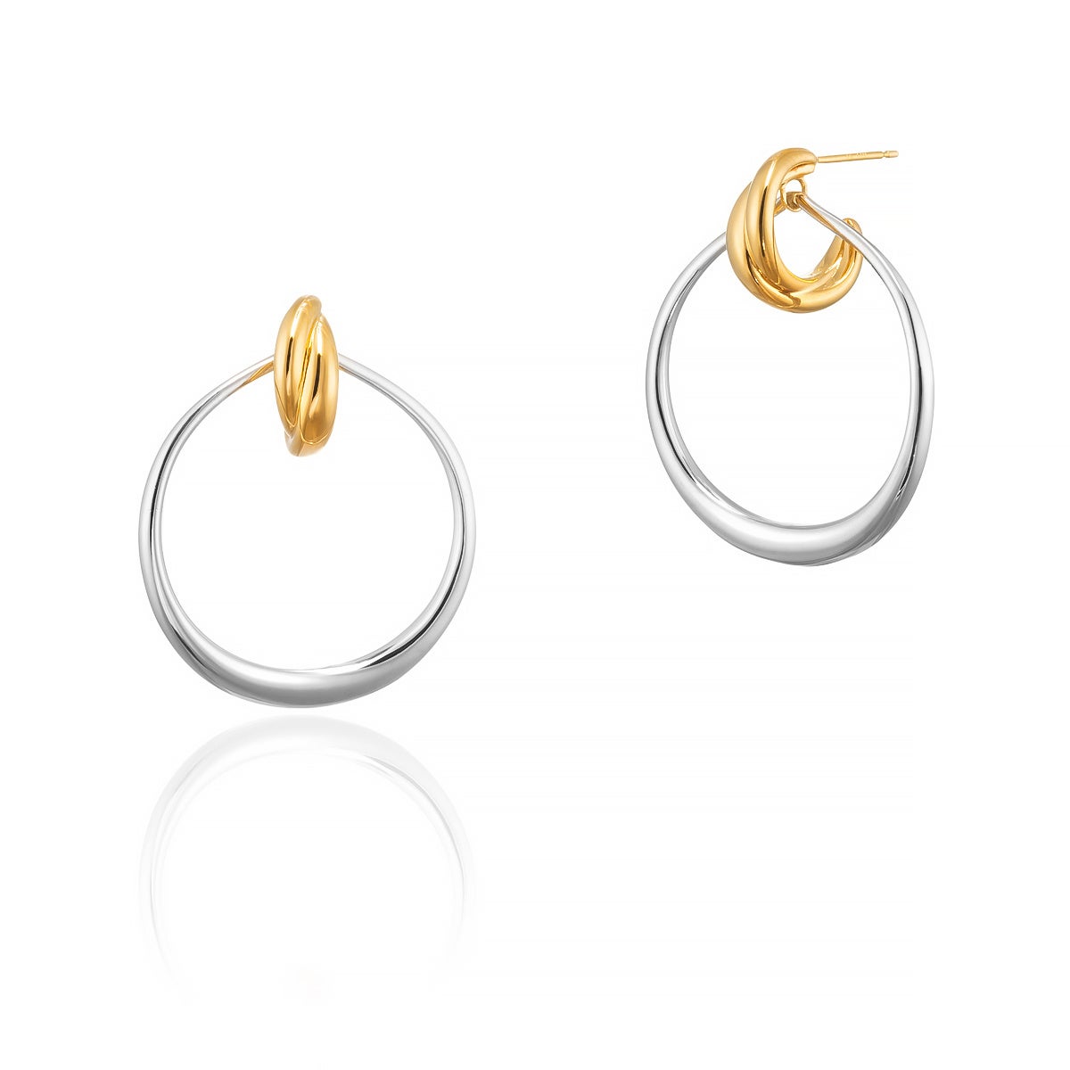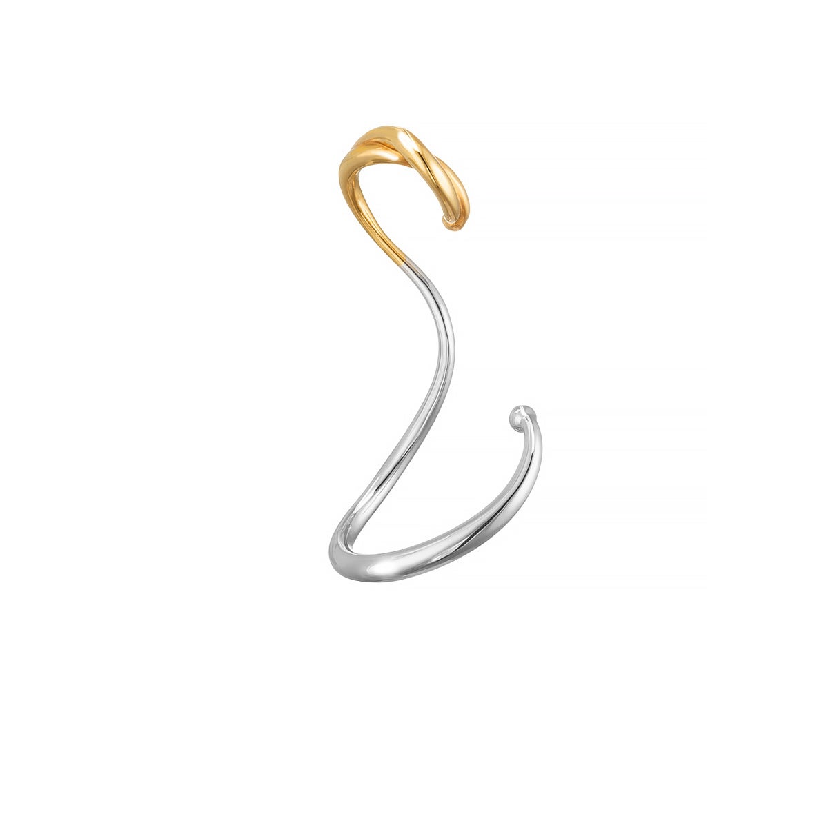 しずくや水面の波紋をイメージした、美しい曲線のフォルムを重ねたデザインは、トレンドのコンビカラーが映え、モダンな印象に。合わせるジュエリーのカラーを選ばないので、様々なコーディネートにしっくりなじみます。耳の形に添って抑揚をつけてカーブする二連風のイヤーカフなど、種類豊富なイヤーアイテムは、あなたの耳元を魅惑的に彩ります。