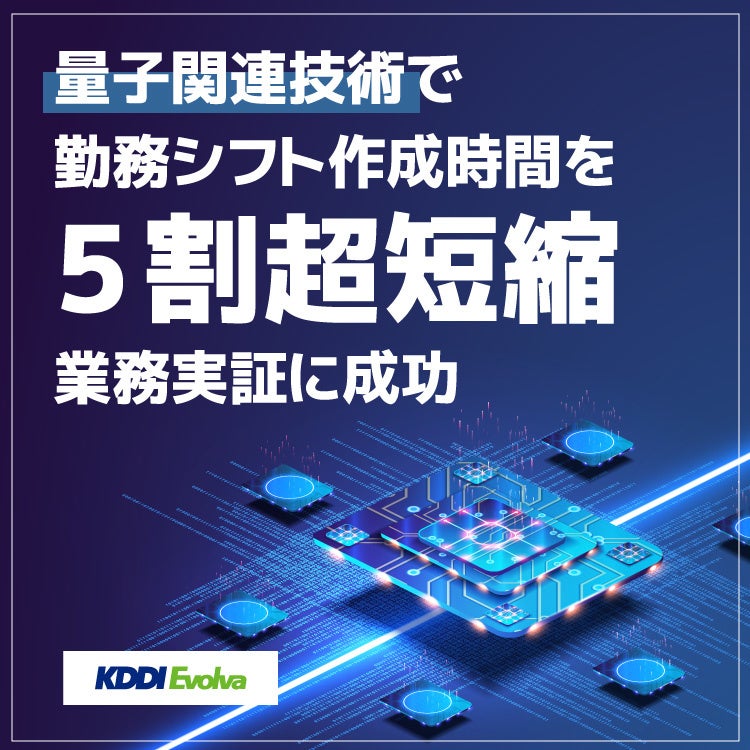 本実証ではKDDIエボルバの北海道地区事業所約100名のスタッフの1カ月分の勤務シフトを作成しました。勤務条件に関するデータの準備やスタッフとの最終調整も含め約5時間で作成を完了することができました。また、本実証では量子コンピューティング関連技術によってシフト作成にかかる工数削減だけではなく、特定スタッフに偏りの出ない勤務シフト作成が可能となりました。
