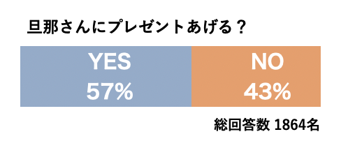 ・旦那さんにプレゼントを渡すと回答した女性は、半数以上。