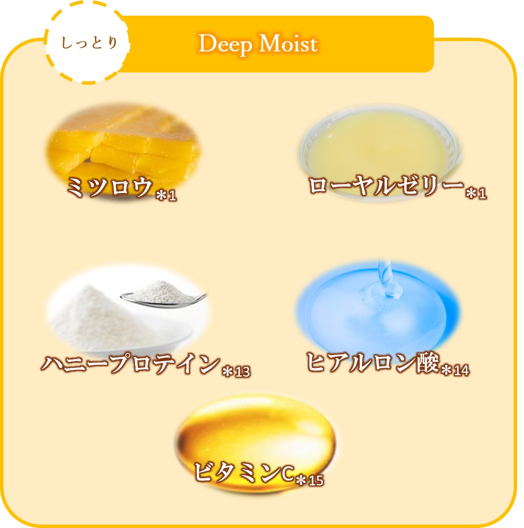 厳選したハチミツ*1と植物由来のオイルリッチ処⽅で乾燥から肌を守り、⾓質ケアをしながら透明感※1のある肌へ導きます。